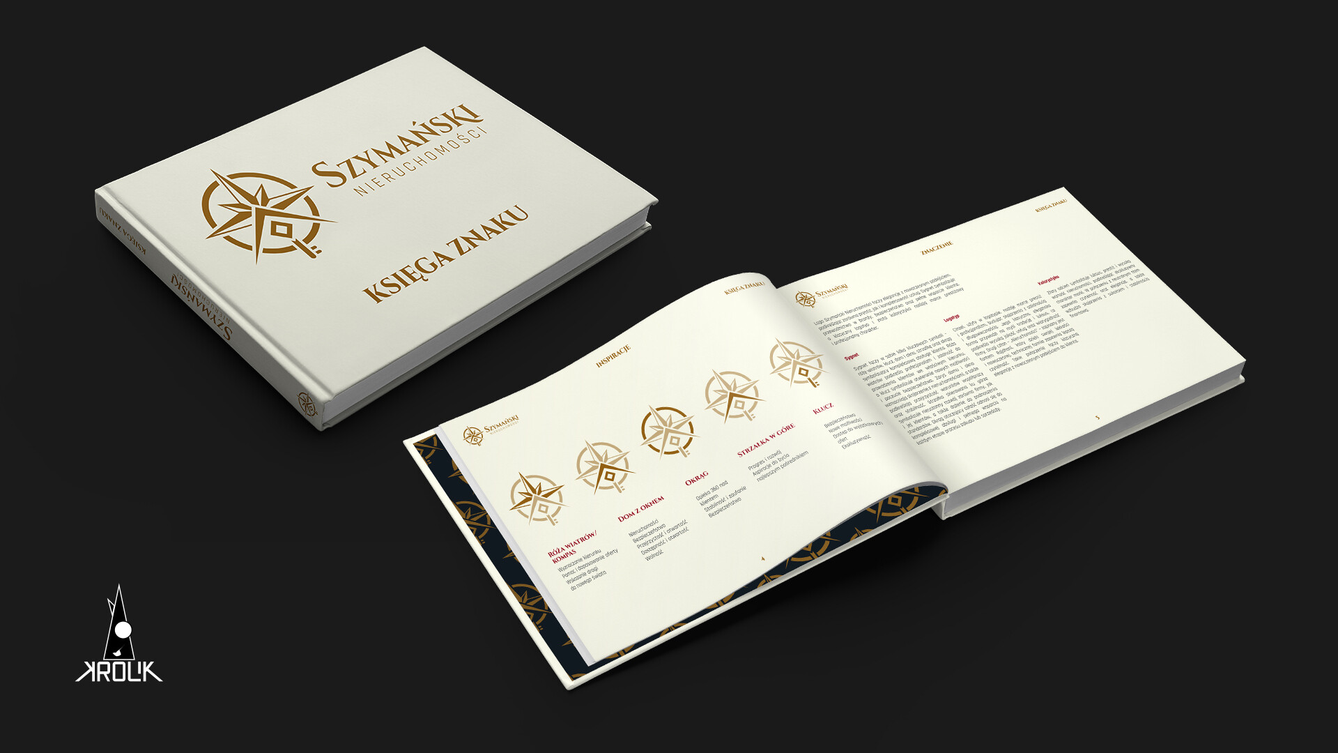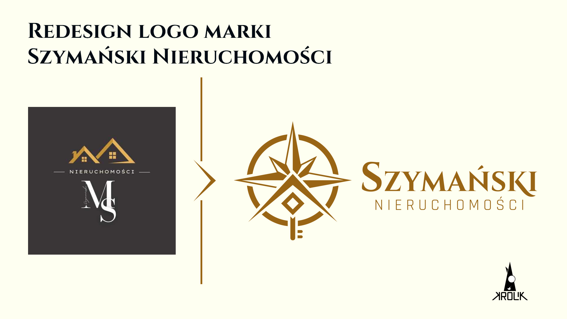 forma przywodzi na myśl tradycję i luksus, co podkreśla wysoką jakość usług oraz wiarygodność firmy. Drugi człon – „Nieruchomości” – zapisany jest