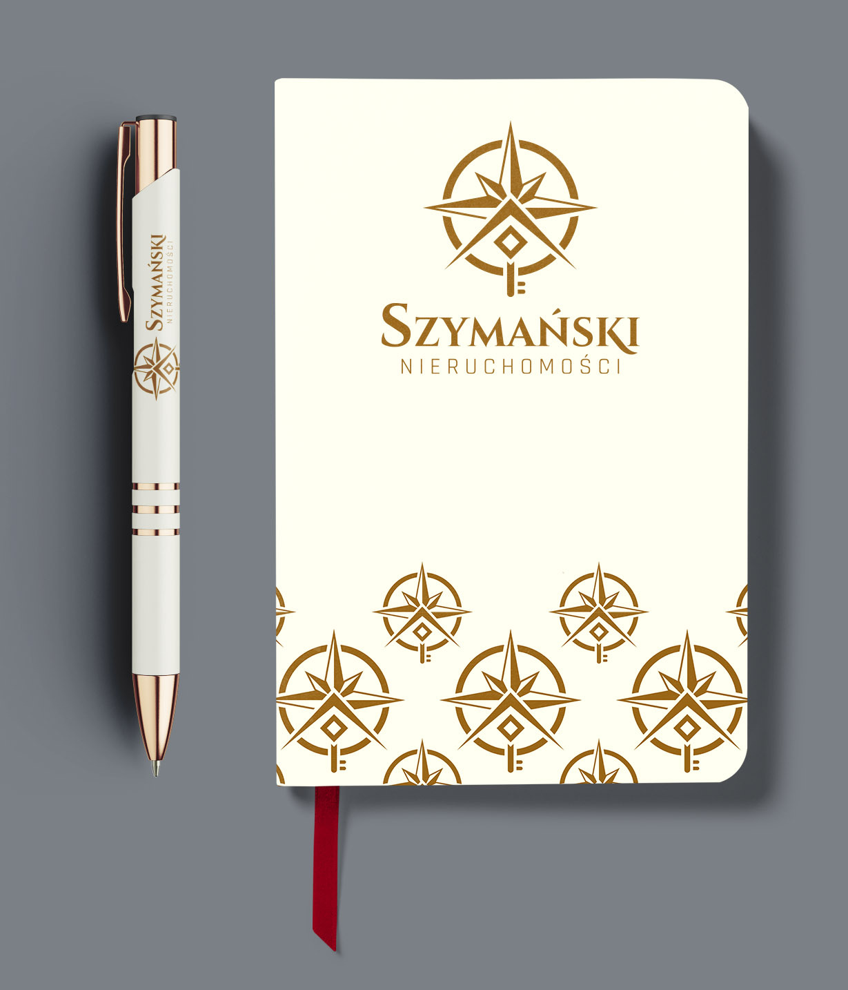 Złoty odcień symbolizuje luksus, prestiż i wysoką wartość nieruchomości, podkreślając ekskluzywny charakter marki. W połączeniu z neutralnym tłem